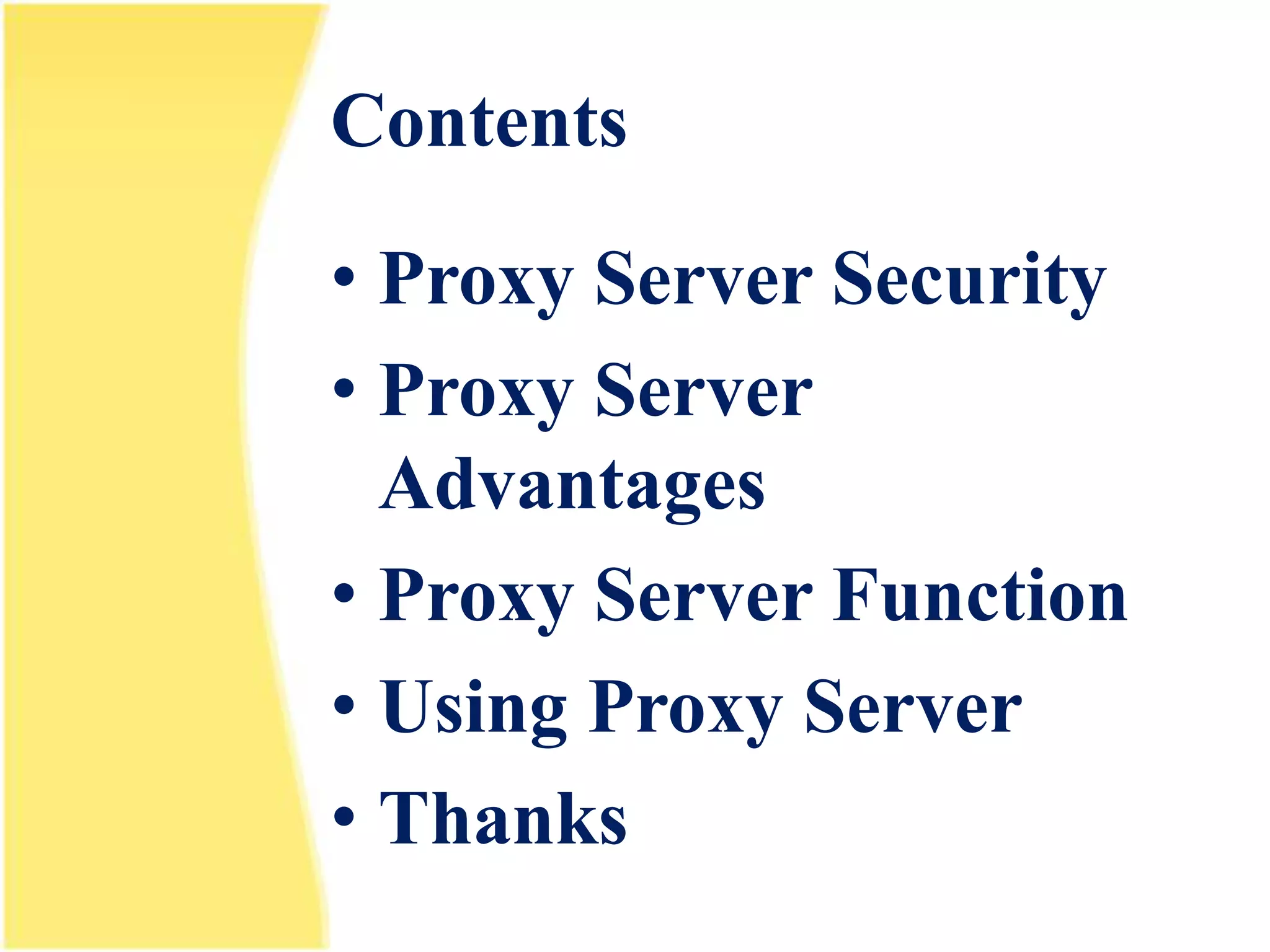 The document discusses the advantages and functions of proxy servers, highlighting their role in enhancing web security by acting as intermediaries between users and the internet. Proxy servers help protect user identities by masking IP addresses and filtering malware, while also improving access speed through caching. They serve various purposes, including maintaining system security and enabling anonymous browsing.