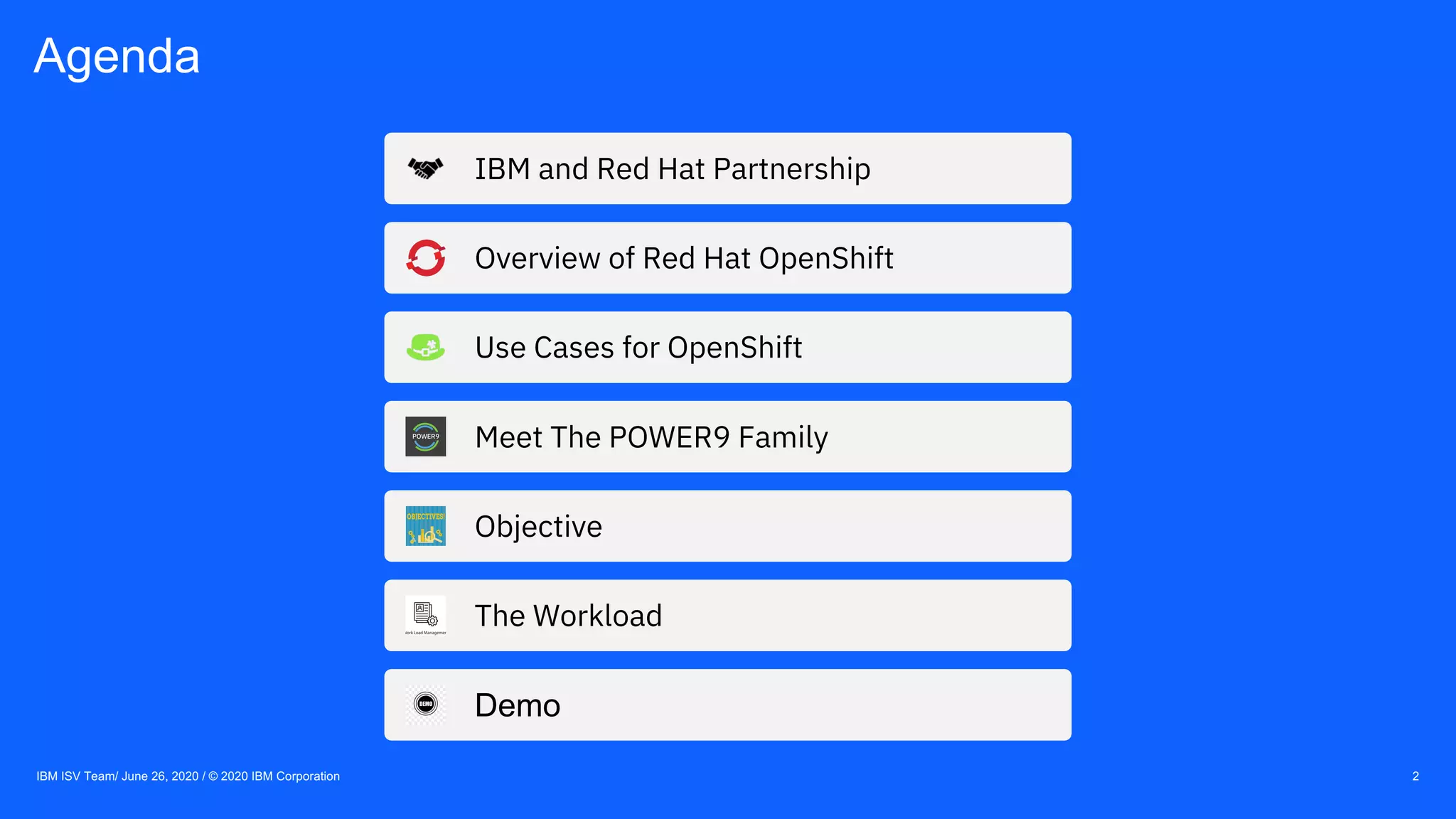 The document discusses the advantages of running Red Hat OpenShift on IBM Power Systems, specifically the Power9 architecture, highlighting performance improvements for data-intensive workloads. It presents a comparison between IBM Power and Intel Xeon servers, illustrating that IBM Power can accommodate significantly more containers per core and achieve higher transactions per second. The key takeaway emphasizes the efficient performance and cost advantages of using Power systems for cloud-ready infrastructure solutions.