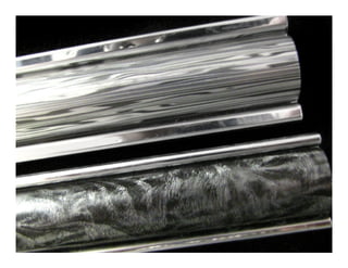 The document discusses a mood board focused on aluminum finishes that blend technical precision with contemporary design. It emphasizes the use of mechanical processes, color, and texture to inspire surface finishes for trim or nameplate applications. The finishes aim to reflect market trends and serve as a starting point for creative design.