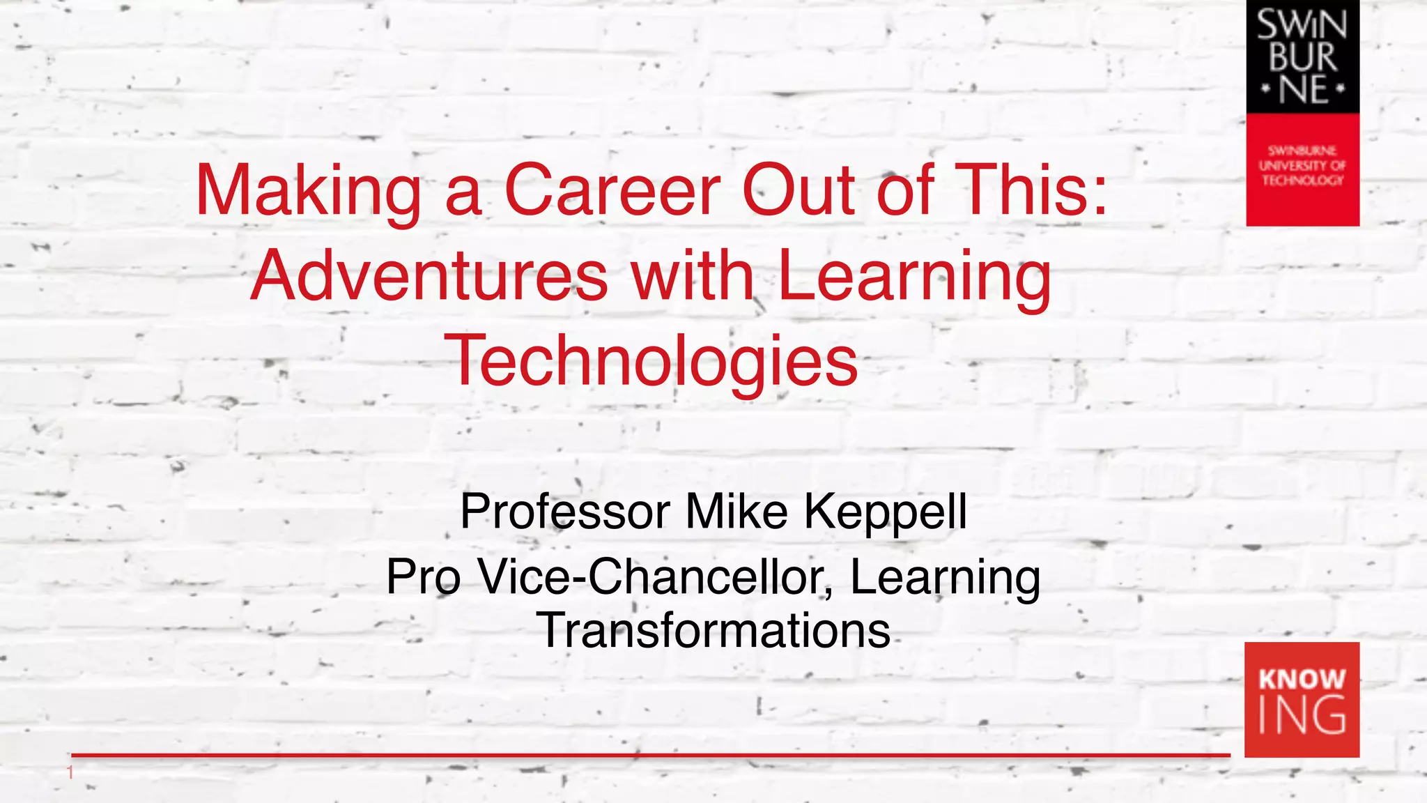This document discusses Professor Mike Keppell's values and approach to learning technologies and transformations, including design thinking, personalised learning, being connected through networks, and changing mindsets. It emphasizes collaborative and evidence-based values, strategic design thinking to ensure relevance, developing digital literacies and self-regulated learning, and recognizing that knowledge exists within networks and connections beyond the individual.