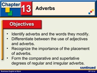 The document provides guidance on proper adverb usage, including: