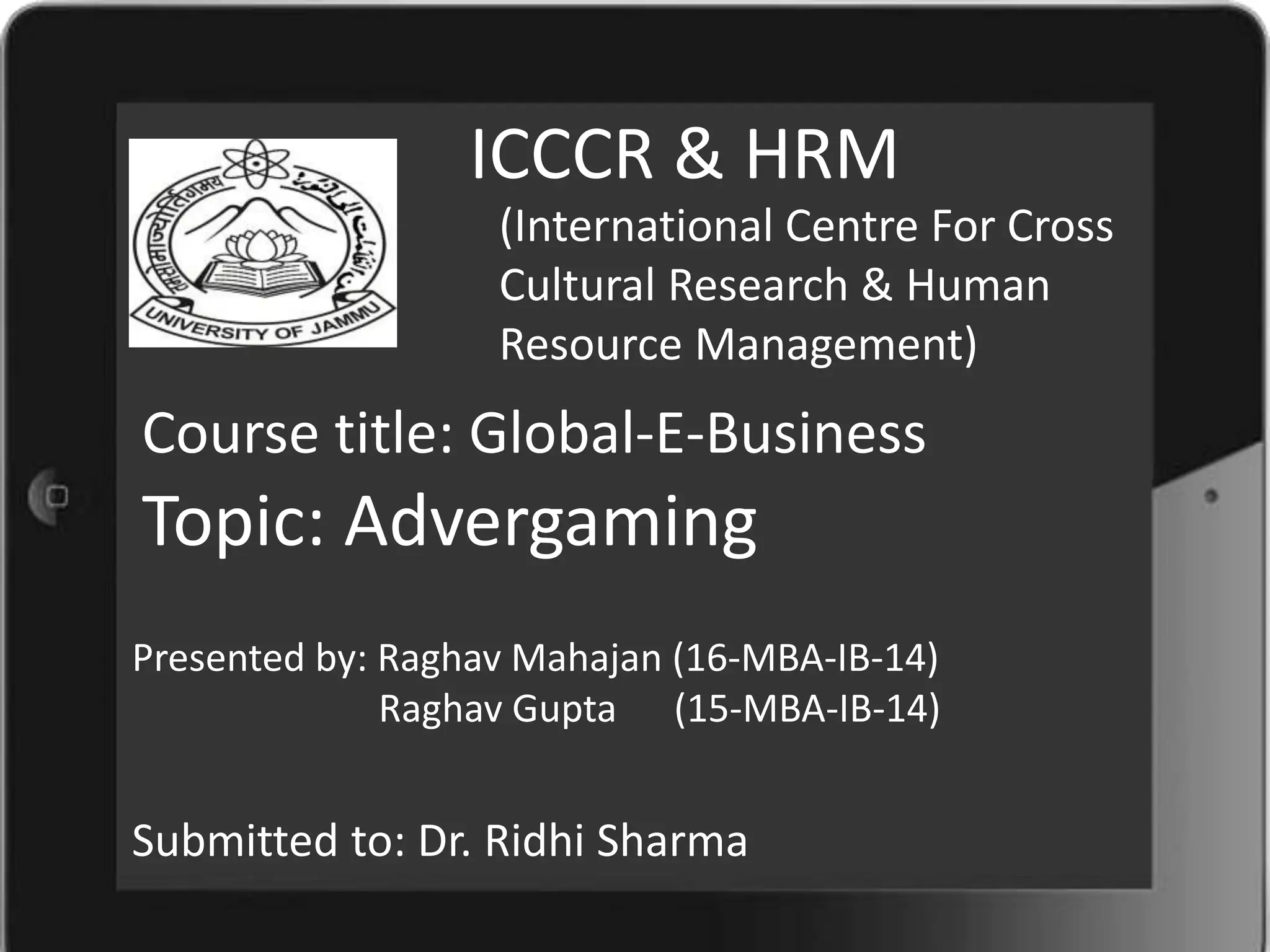 This document discusses advergaming, which is using interactive games to advertise and market products. It defines advergaming and explains that it allows for continued brand exposure through consumer choice and active participation. The document then categorizes advergaming into above-the-line, below-the-line, and through-the-line based on how advertising is disseminated through games. It also provides examples of companies that have used advergaming and discusses the advantages in terms of brand awareness and message association.