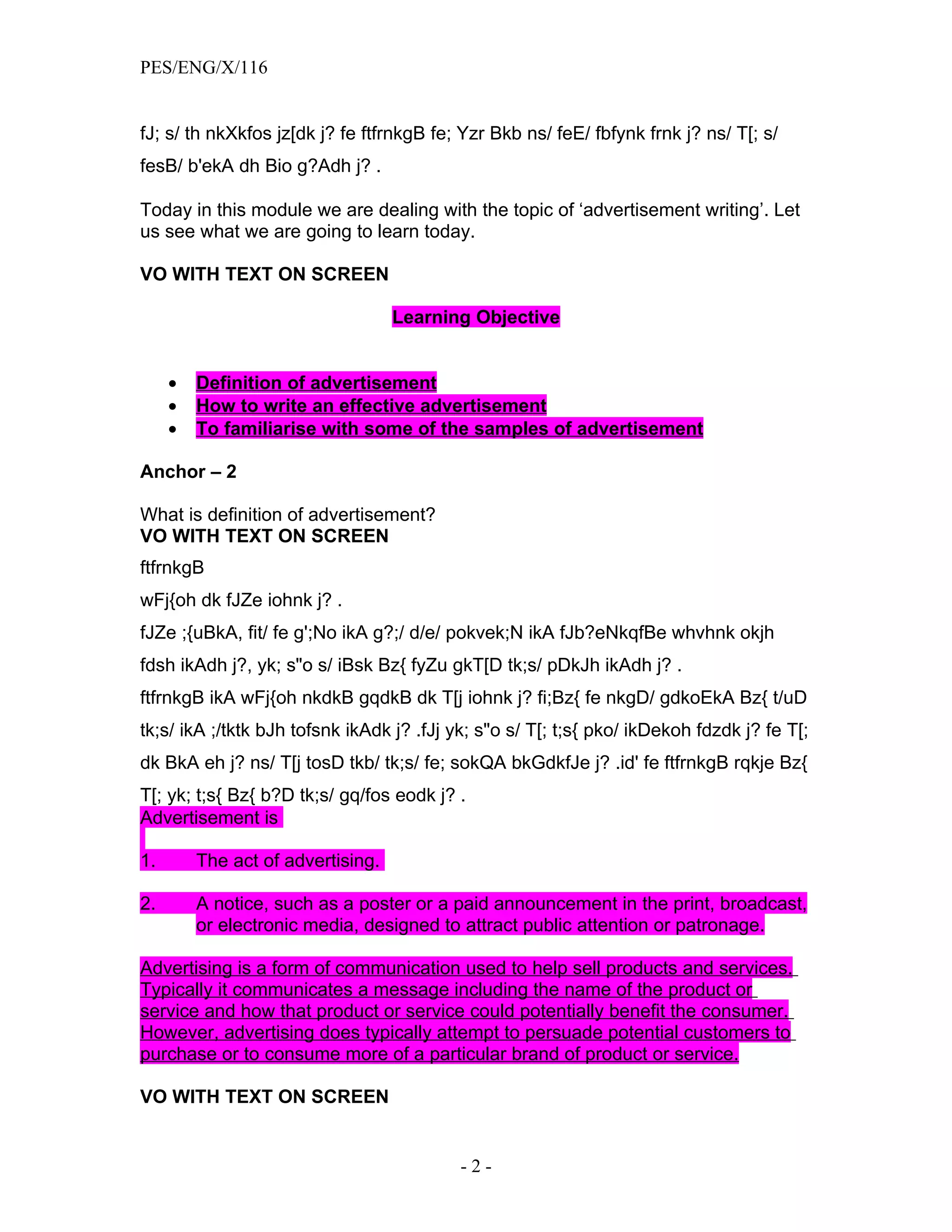 This document provides guidance on writing effective advertisements. It begins by defining advertisements and their purpose. It then lists important points to include in different types of advertisements like matrimonial, recruitment, property, and vehicle advertisements. The document also provides tips for crafting advertisements that grab attention, generate interest, create desire, and inspire action. Specifically, it recommends that advertisements be simple, brief, creative, and clearly highlight product benefits. Finally, it provides examples of effective advertisement headlines and formats.