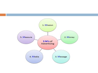 The document outlines the fundamentals of advertising, including its definitions, key elements, and objectives such as increasing sales and building brand recognition. It discusses the roles of various players in advertising, such as advertisers, agencies, and media, as well as different types of advertising like interactive and institutional. Additionally, it highlights the importance of advertising for advertisers, consumers, and society, emphasizing its economic and social responsibilities.