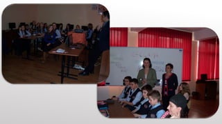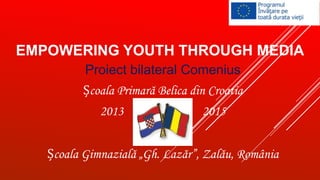 This document summarizes a bilateral project between a primary school in Croatia and a middle school in Romania from 2013 to 2015 focused on empowering youth through media. It details a workshop held in February 2014 where students learned about the advantages and disadvantages of advertising and created newspaper advertisements. The workshop was led by a lecturer from the University of West "Vasile Goldiş" in Arad, Romania.