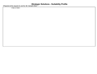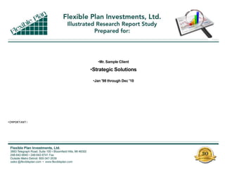 This document provides a 13-year performance summary of the "Strategic Solutions Combo" portfolio for Mr. Sample Client from January 1998 through December 2010. The Combo portfolio outperformed the S&P 500 index with returns of 23.2% annually compared to 4.1% for the index. It also shows lower risk than the index, as measured by standard deviation of returns. Charts compare the growth of a $100,000 investment in the Combo portfolio versus the S&P 500 index over time. Tables also rank the risk and return of the Combo versus other strategies and benchmarks.