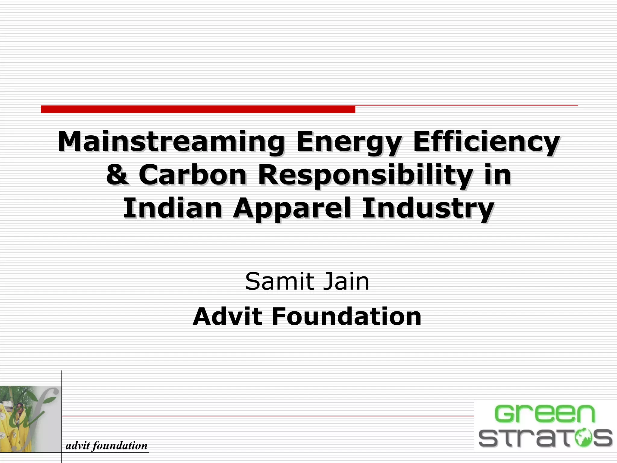 The document discusses strategies for mainstreaming energy efficiency and reducing carbon emissions in the Indian apparel industry. It provides an overview of baseline energy consumption and carbon emissions for a typical apparel manufacturing unit. Common energy efficiency measures are identified that could save on average 4.6 lakh units of electricity annually for each unit, reducing costs by 19 lakhs rupees annually after investing 40 lakhs rupees. Implementing energy efficiency and using an ESCO model could reduce carbon emissions from each unit by around 105 tonnes or 7% of current emissions annually. Monitoring and verification plans are needed to track performance and ensure savings.