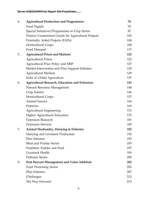 This document provides a summary of the State of Indian Agriculture in 2011-12. It discusses several topics related to Indian agriculture including: