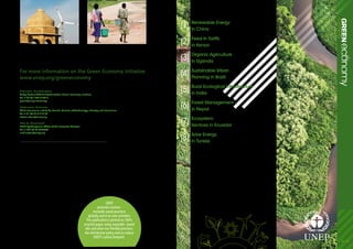 China is promoting renewable energy through policies like feed-in tariffs to encourage a shift to low-carbon growth. Kenya adopted a feed-in tariff in 2008 requiring utilities to purchase renewable energy at a set price to stimulate investment. This policy aims to boost renewable capacity, reduce reliance on imports, create jobs, and lower costs while cutting emissions. Initial results suggest the policy could add 1300MW of renewable capacity to Kenya's energy supply and support rural development.