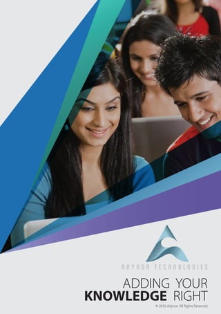 Adynor is a Bangalore-based company that connects engineering students to real-world projects from companies to help fill the gap between theoretical and practical learning. Through Adynor's platform, students can gain experience on projects in fields like Android, analytics, web development, and security. This helps make students more employable, with better placements and recognition in industry. Companies benefit by accessing untapped talent and mentoring students to be productive from day one. The goal is for students to gain up to a year of work experience through projects to graduate as hirable professionals.