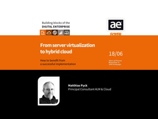 The document discusses the transition from server virtualization to hybrid cloud, outlining challenges and benefits associated with cloud implementation. It emphasizes the need for better understanding of cloud infrastructure, operational maturity, and various cloud service models such as IaaS, PaaS, and SaaS. The agenda includes exploring trends, assessing current cloud usage, and recommending strategies for effective cloud adoption and operational efficiency.