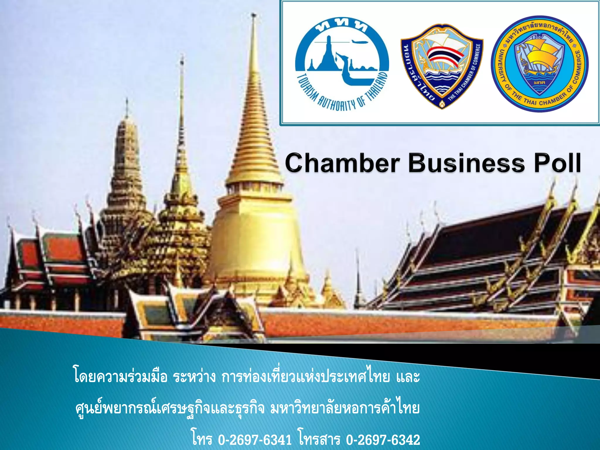 และ ศูนย์พยากรณ์เศรษฐกิจและธุรกิจ มหาวิทยาลัยหอการค้าไทย โทร 0-2697-6341 โทรสาร 0-2697-6342
