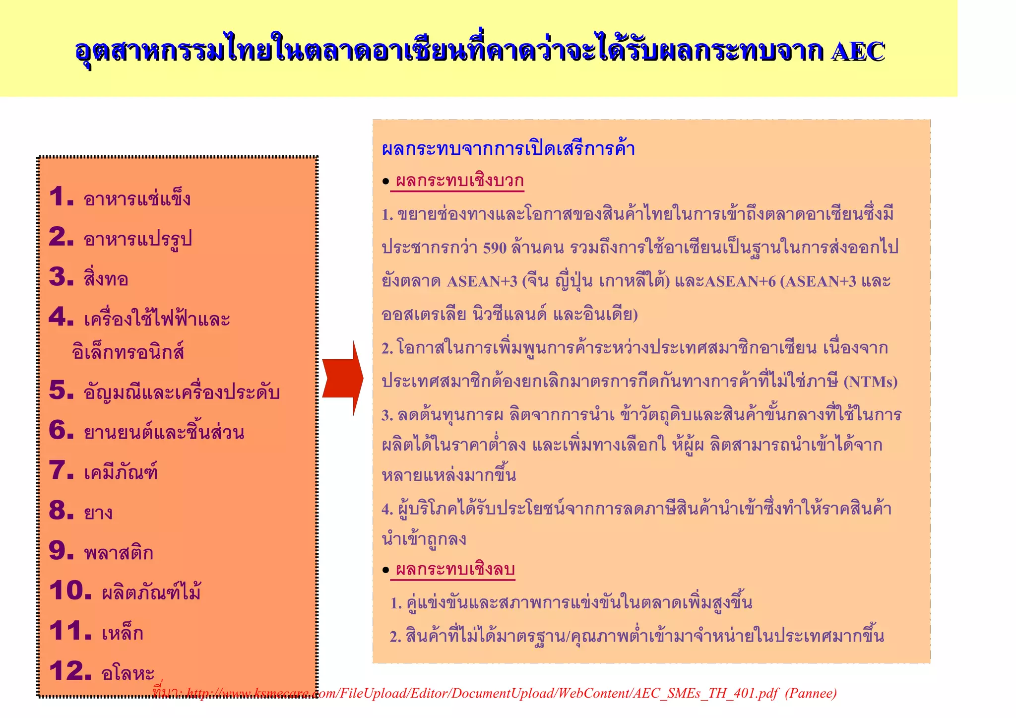 อุตสาหกรรมไทยในตลาดอาเซียนทีคาดว่าจะได้รบผลกระทบจาก AEC