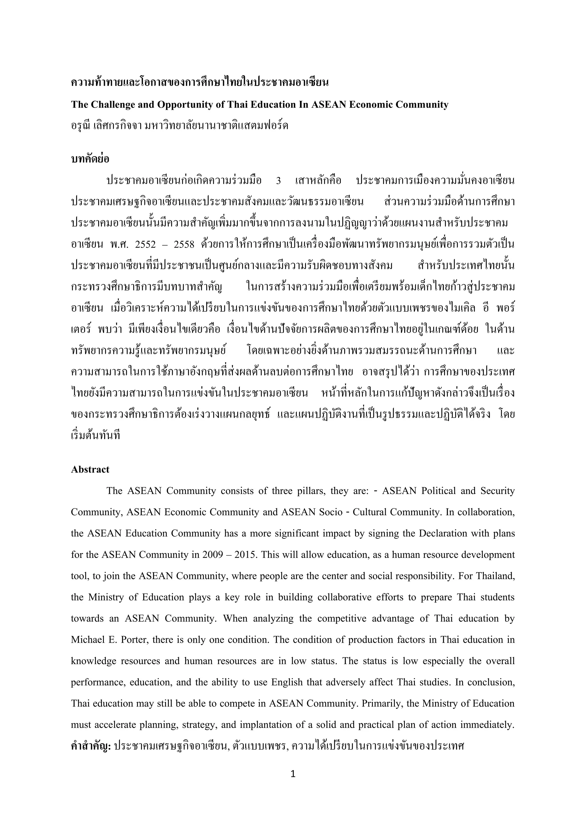 towards an ASEAN Community. When analyzing the competitive advantage of Thai education by