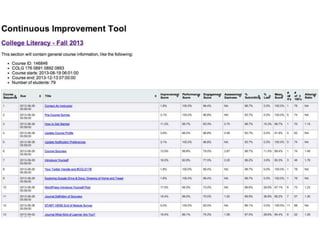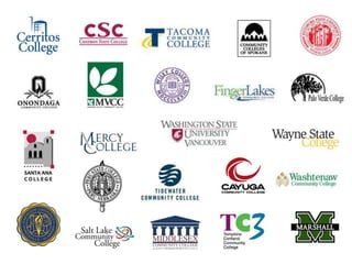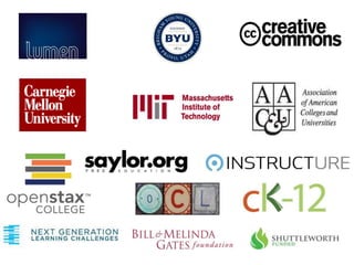 The document discusses the implementation of Open Educational Resources (OER) to enhance educational success for at-risk students across multiple institutions, specifically targeting college readiness and completion. It highlights the barriers caused by high textbook costs and presents a collaborative approach through the Kaleidoscope initiative to develop open course designs and improve instructional methods using learning analytics. The goal is to reduce costs for students while enhancing access to learning materials and promoting continuous improvement in educational outcomes.