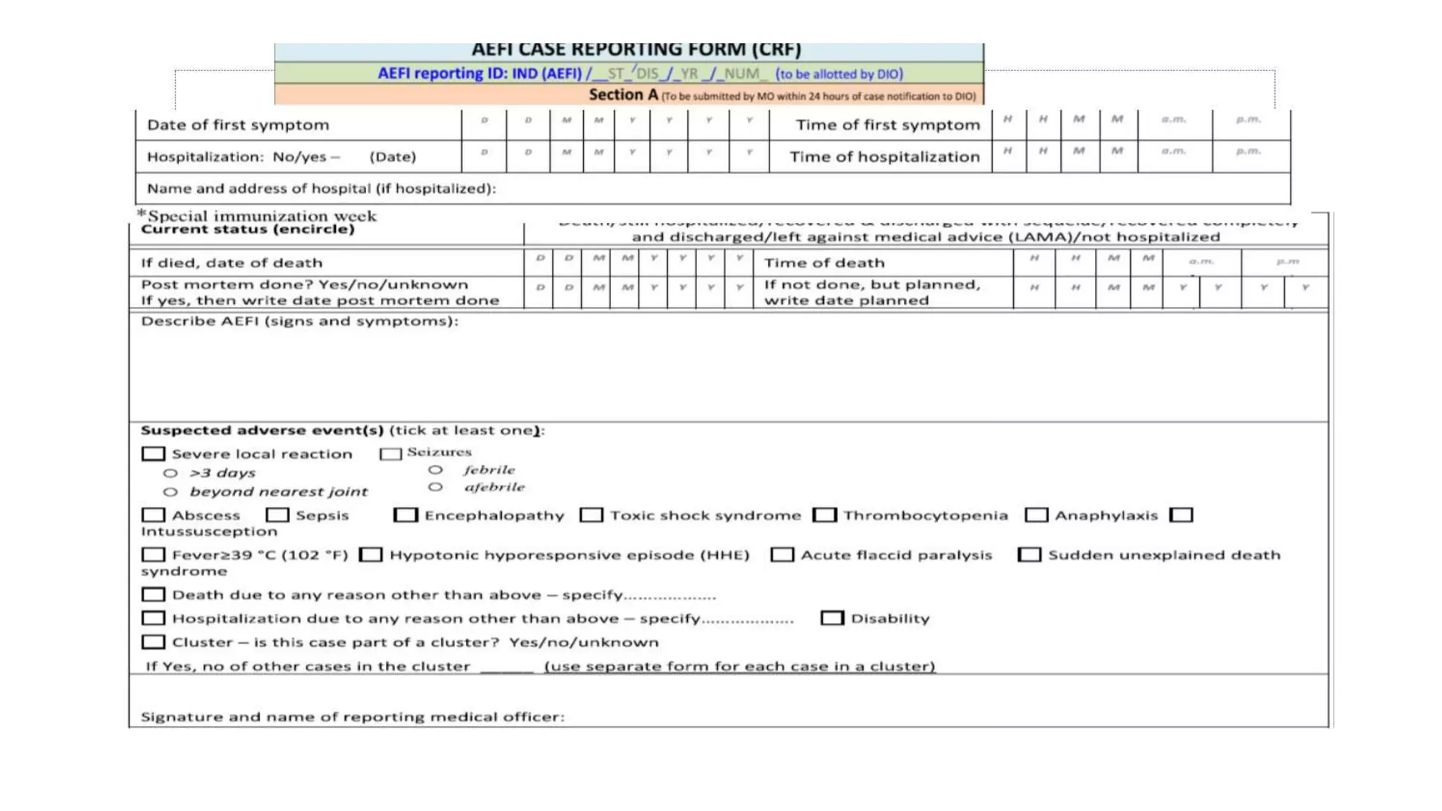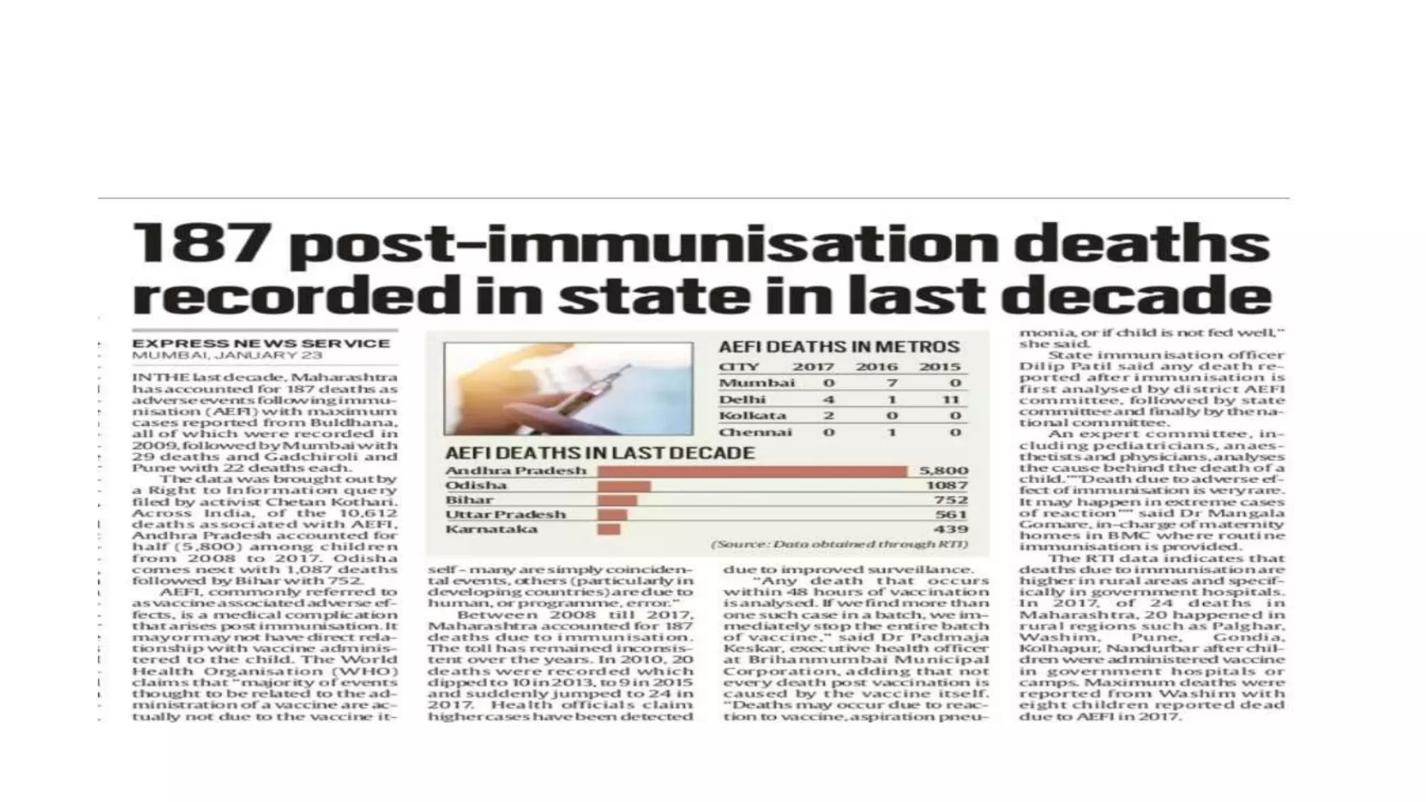 The document discusses adverse events following immunization (AEFI), detailing definitions, types, case definitions, and investigation steps while highlighting India's extensive immunization program. It emphasizes the importance of post-marketing surveillance for vaccine safety and provides guidelines for minimizing AEFI occurrences. The text also outlines contraindications for vaccines and the roles of reporting and investigating AEFIs to enhance public health safety.