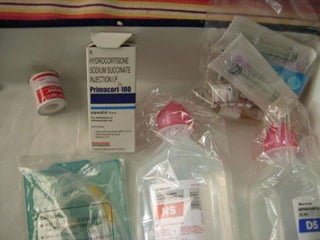 This document provides guidelines for managing adverse events following immunization (AEFI). It states that vaccination sites and supervisors will provide initial treatment for AEFI and all centers should be equipped with AEFI treatment kits. Serious AEFI cases should be immediately referred to health facilities and costs will be covered. It also details the components of an AEFI treatment kit including drugs, equipment, dosage charts, and guidelines for recognizing and managing anaphylaxis including giving adrenaline and hydrocortisone injections.