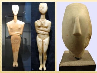 - The Cycladic civilization created small marble figurines between 3200-2000 BC that were likely used in funerary rituals.