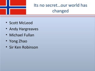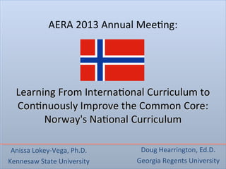 This document discusses analyzing and revising curriculum standards to better prepare students for 21st century skills. It summarizes a study comparing the Common Core State Standards, Georgia Performance Standards, and Norwegian curriculum standards. The G-CAM model found the Norwegian standards addressed more skills like creativity and problem-solving in fewer standards. The document proposes targeted revisions to make the Common Core standards more aligned with skills needed for college and careers by drawing on strengths in the Norwegian standards.