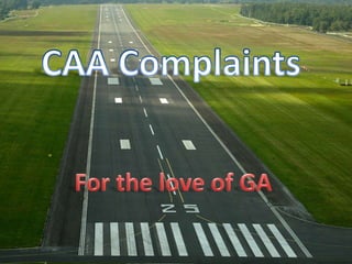 The document discusses the Civil Aviation Authority (CAA) as the UK's aviation regulator, highlighting issues such as increasing staff costs, regulatory charges, and a perceived lack of value for money from the aviation industry. It notes a significant rise in fees and regulations imposed by the CAA over recent years, leading to higher prices for consumers and a decline in general aviation businesses. The document advocates for the establishment of an independent oversight body to address concerns regarding the CAA's operations and customer service inadequacies.