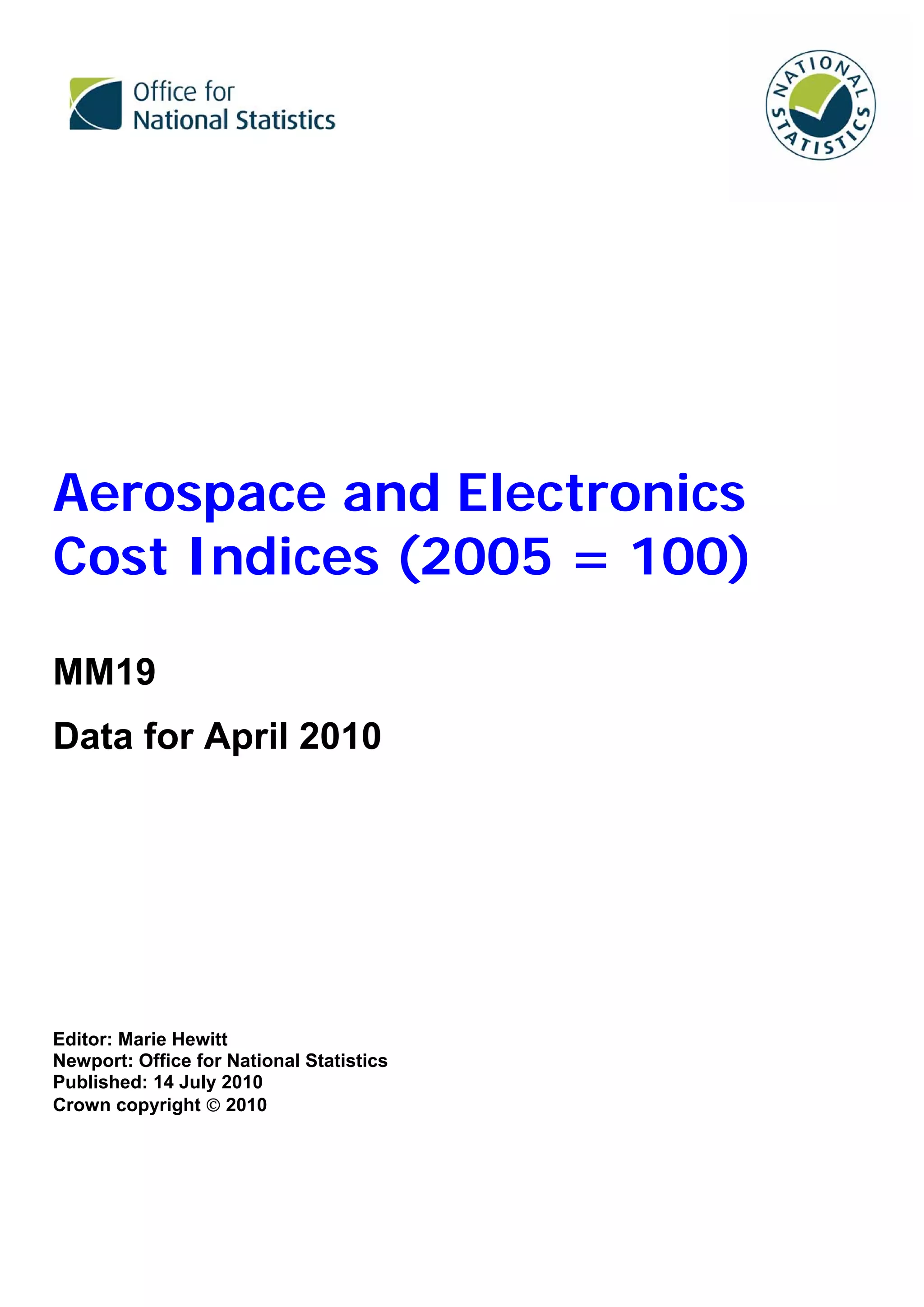 The document provides cost indices for various industries in the aerospace and electronics sectors for April 2010. It includes: