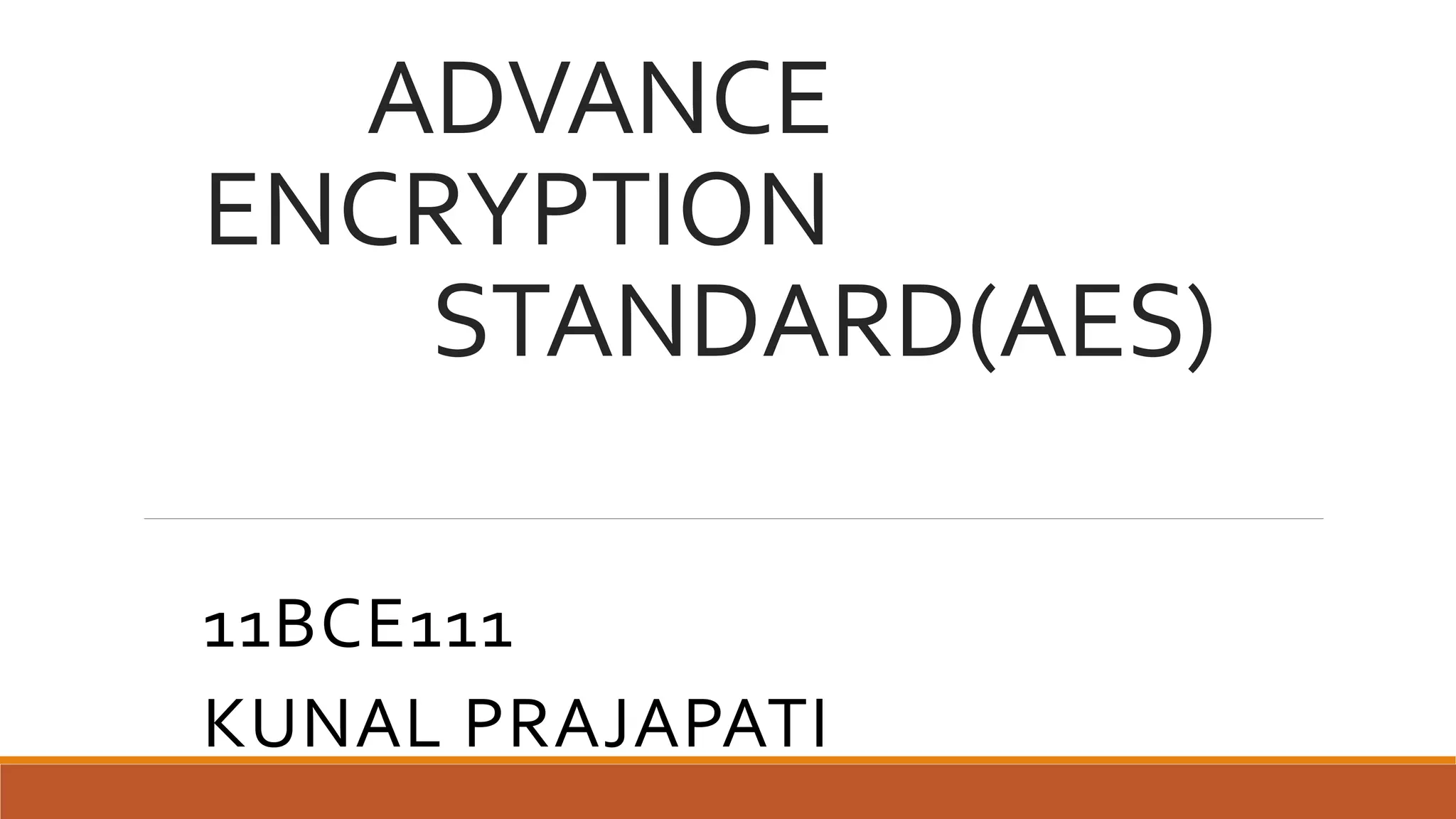 The document discusses the Advanced Encryption Standard (AES) algorithm. AES is a symmetric block cipher that encrypts data in blocks of 128 bits using cipher keys of 128, 192, or 256 bits. It operates on a 4x4 column-major order state matrix through 10-14 rounds depending on the key size. Each round consists of four steps: byte substitution, shifting rows, mixing columns, and adding the round key. The key is expanded into a key schedule to derive a different round key for each round.