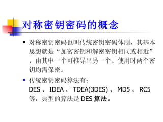 文档介绍了高级加密标准(AES)和对称密钥密码的基本概念与特性,包括加密和解密过程、密钥的生成与管理等。AES算法的设计原则及其在Java中的实现也被详细描述。尽管对称加密速度快,密钥管理的复杂性与高成本仍是其主要局限性。