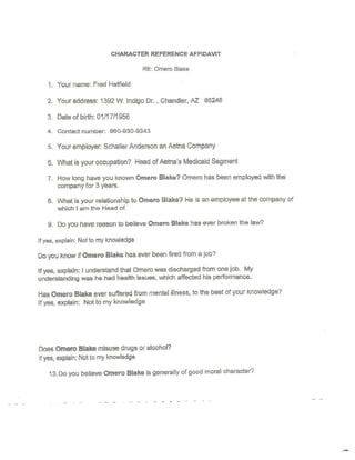 Aetna Character Reference