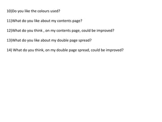1) Respondents liked different aspects of the magazine such as the colors, style and celebrities featured.