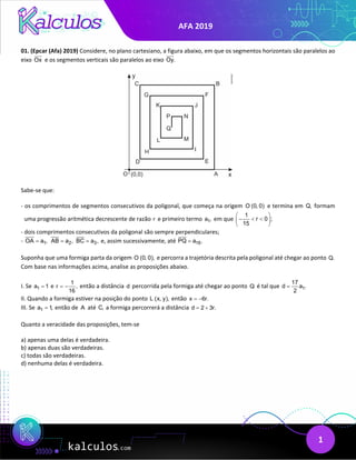 This document presents a multi-part math problem involving a polygon with sides of decreasing length forming an arithmetic progression. It provides information about the polygon and asks the reader to analyze several propositions related to distances traveled by a formic along the polygon's path. It then asks the reader to identify which of the propositions are true.