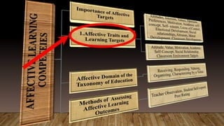 2. It defines key affective concepts like the affective domain, levels of affective learning, and methods of assessing affective outcomes.