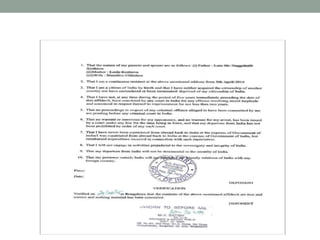 An affidavit is a written statement sworn under oath or affirmation before an authorized person such as a notary public or magistrate. It must relate facts within the affiant's personal knowledge and be signed in the first person. Filing a false affidavit can result in perjury charges. Affidavits are used in legal proceedings and to prove or support facts in situations like property disputes, name changes, and lost documents.