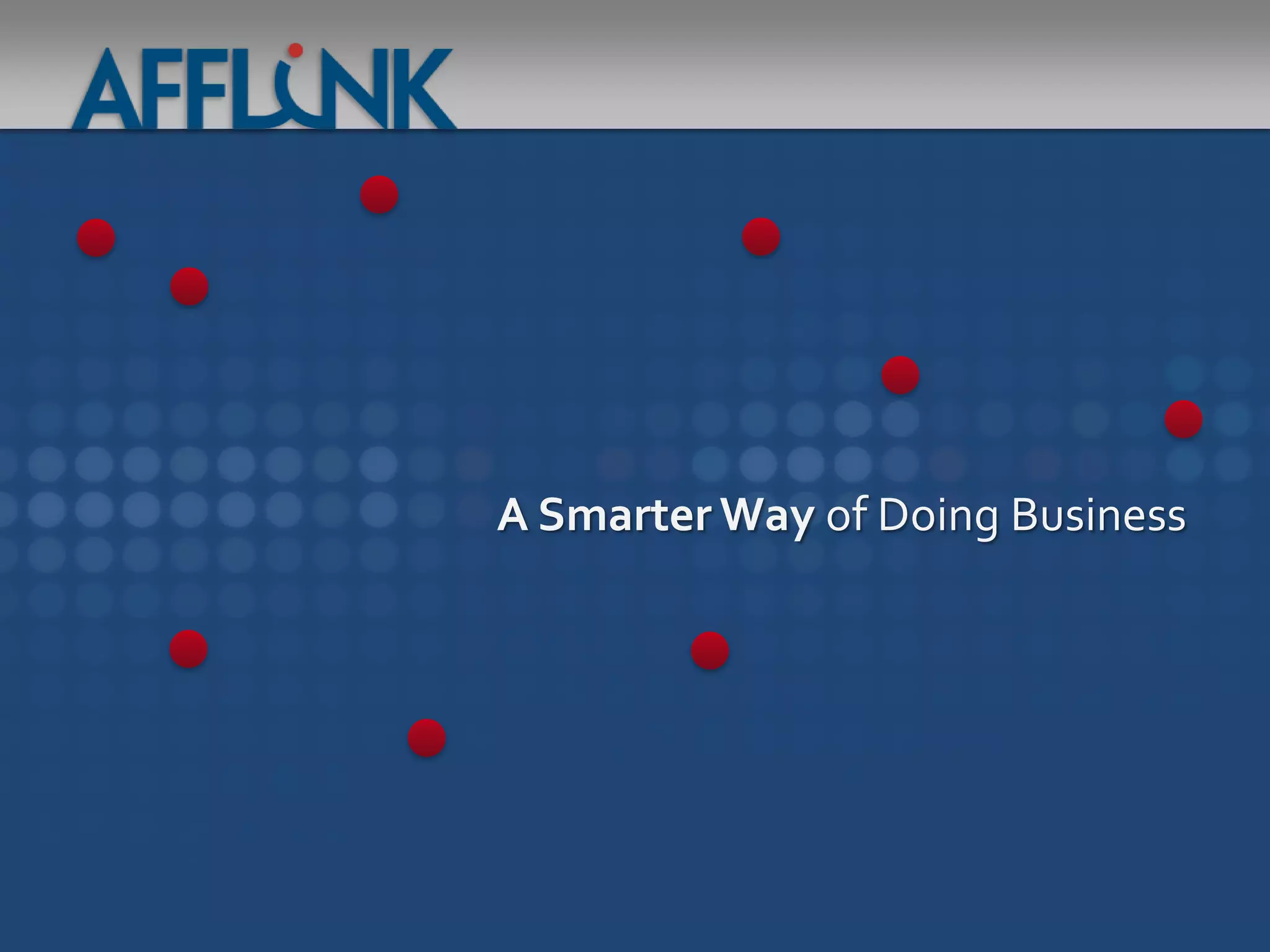 Afflink is a global leader in supply chain optimization, founded in 1977 and acquired by the Blackstone Group in 2008. The company emphasizes its role as a sales and marketing organization that focuses on delivering quantifiable growth and differentiation for its members through comprehensive business solutions. With a commitment to improving overall business health and maximizing profits, Afflink aims to provide competitive advantages in the marketplace.
