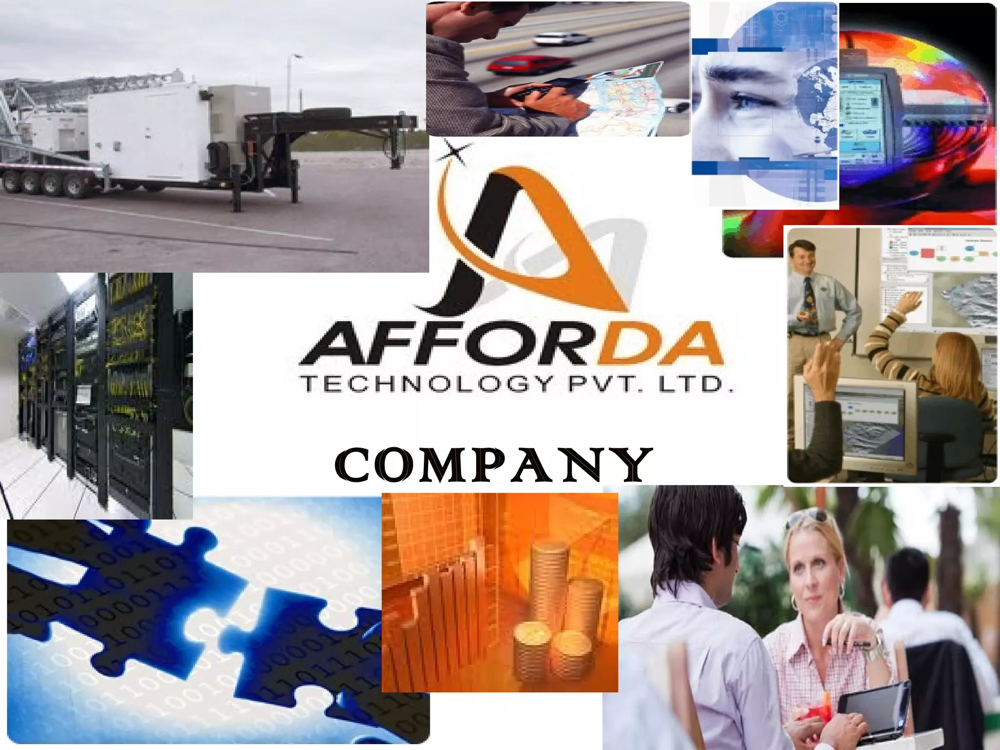 This document provides an overview of Afforda Technology company, including its mission, vision, values, strategy, goals, resources, services, and training courses. The company's mission is to meet client requirements with transparency and cost-effectiveness. Its vision is to provide excellent global client services. The company's core values include customer-centric approach, innovation, transparency, and results-orientation. It has a team of over 100 qualified telecom professionals and aims to establish itself as a trusted telecom partner.