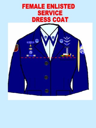 The document provides instructions for proper uniform wear and placement of insignia for different uniforms. Section A lists different uniform items for officers and enlisted including hats, dress uniforms, and shirts. Section B refers to jackets without providing details. Section C indicates the instructions apply to BDU uniforms. The rest of the document includes diagrams and instructions for positioning insignia such as name tags, shoulder marks, and other identifiers on the uniforms.