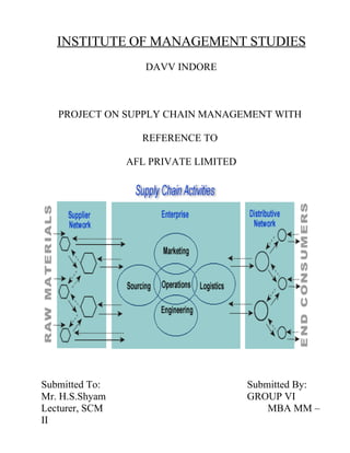 This document is an acknowledgement for a project submitted by a group of MBA students at the Institute of Management Studies at DAVV Indore. It thanks various people who provided guidance and support during the project, including the project guide Mr. H.S. Shyam, an executive at AFL Private Limited named Mr. Kallol Roy, and the staff at AFL Private Limited. It also thanks God for enabling the completion of the work. The document is signed by 13 students who were involved in the project.