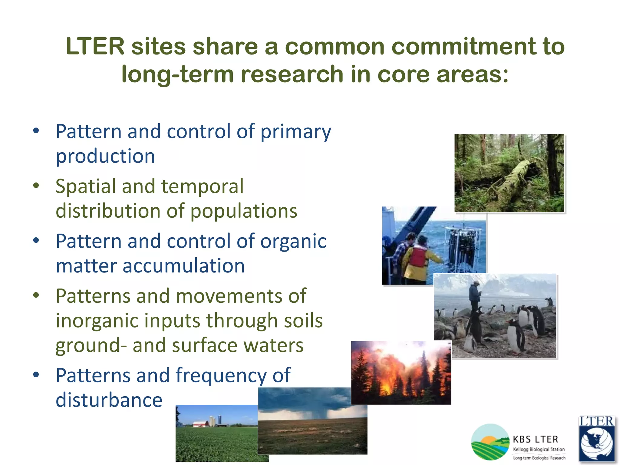 - The Kellogg Biological Station LTER site experiments with different cropping systems including conventional, no-till, low-input, and organic management to study how to manage crops with biology rather than chemicals while maintaining high yields.