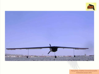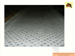 This document provides an overview of the African Hawk II unmanned aerial vehicle project completed by three students. It describes the objectives of modeling and manufacturing the aircraft and installing an autopilot system. Updates from previous models include changes to the internal arrangement, landing gear, use of vacuum bagging in manufacturing, and the MicroPilot autopilot. Test results are presented relating throttle position to thrust, RPM, endurance, and aircraft velocity. The manufacturing process is also summarized, including mold making, vacuum bagging of composite surfaces, and installation of control surfaces.