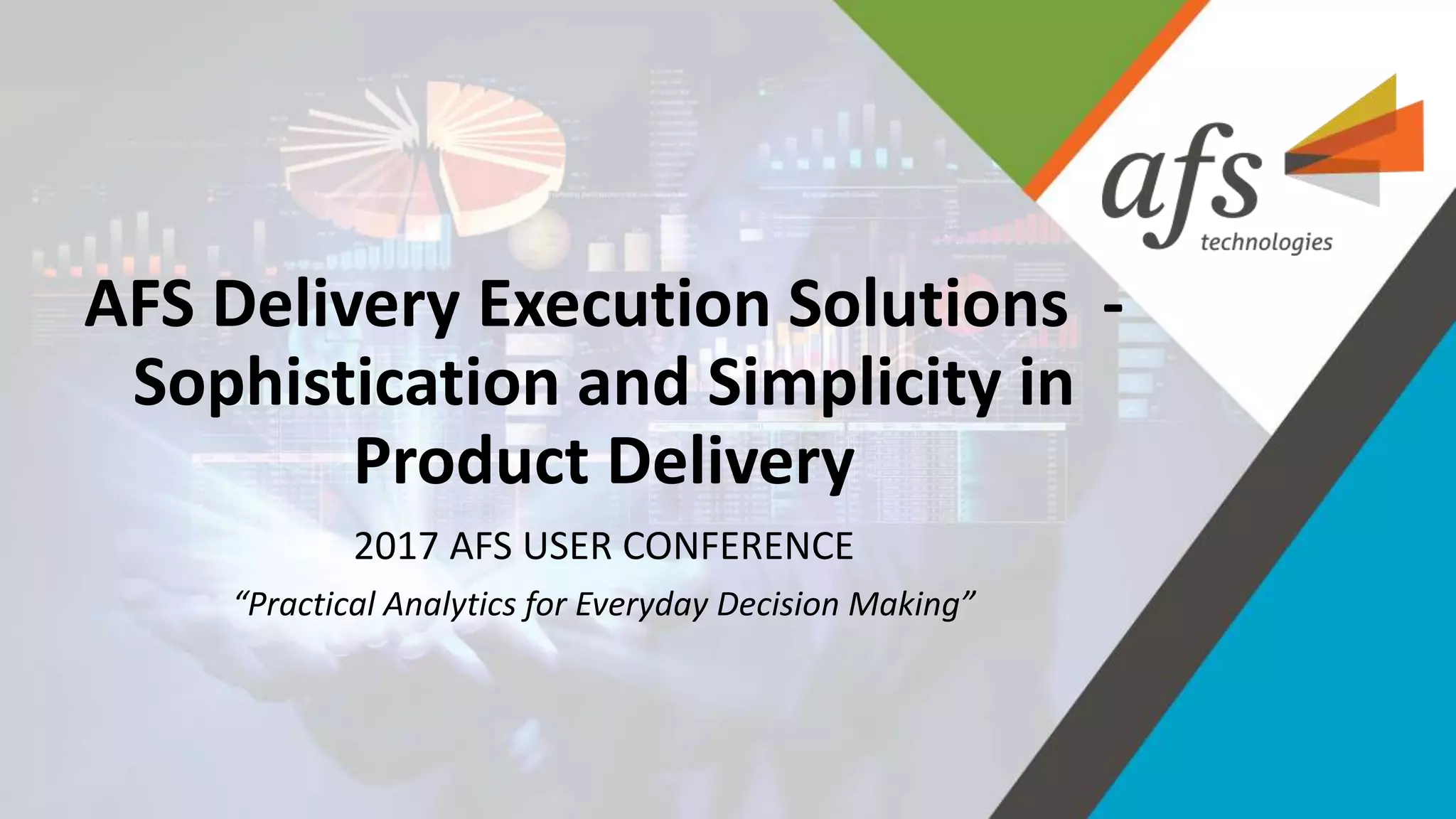The document outlines advancements in AFS Delivery Execution Solutions (DES), highlighting features like mobile electronic proof of delivery (ePOD), client portals, and distributor management systems. It details experiences of key speakers and presents the roadmap for the product, indicating continual innovation and enhancements scheduled through 2018. Key benefits include improved efficiency, data accessibility, and customizable solutions for the delivery and supply chain sectors.