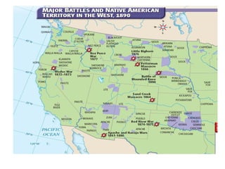 3) Conflict arose as white settlers pushed onto lands inhabited by Native Americans, leading to a series of Indian Wars as the US military forced tribes onto reservations to make way for expansion.