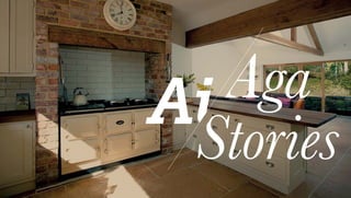 The document describes the traditional production method of AGA cooking stoves, which has remained unchanged since 1922, emphasizing the unique surface of each casting. It also discusses a collaboration between human authors and a machine learning algorithm to create personalized stories for social sharing, using elements that highlight AGA's aesthetic. The stories can be tailored with biographical details and potentially used as competition prizes, combining nostalgia with modern technology.