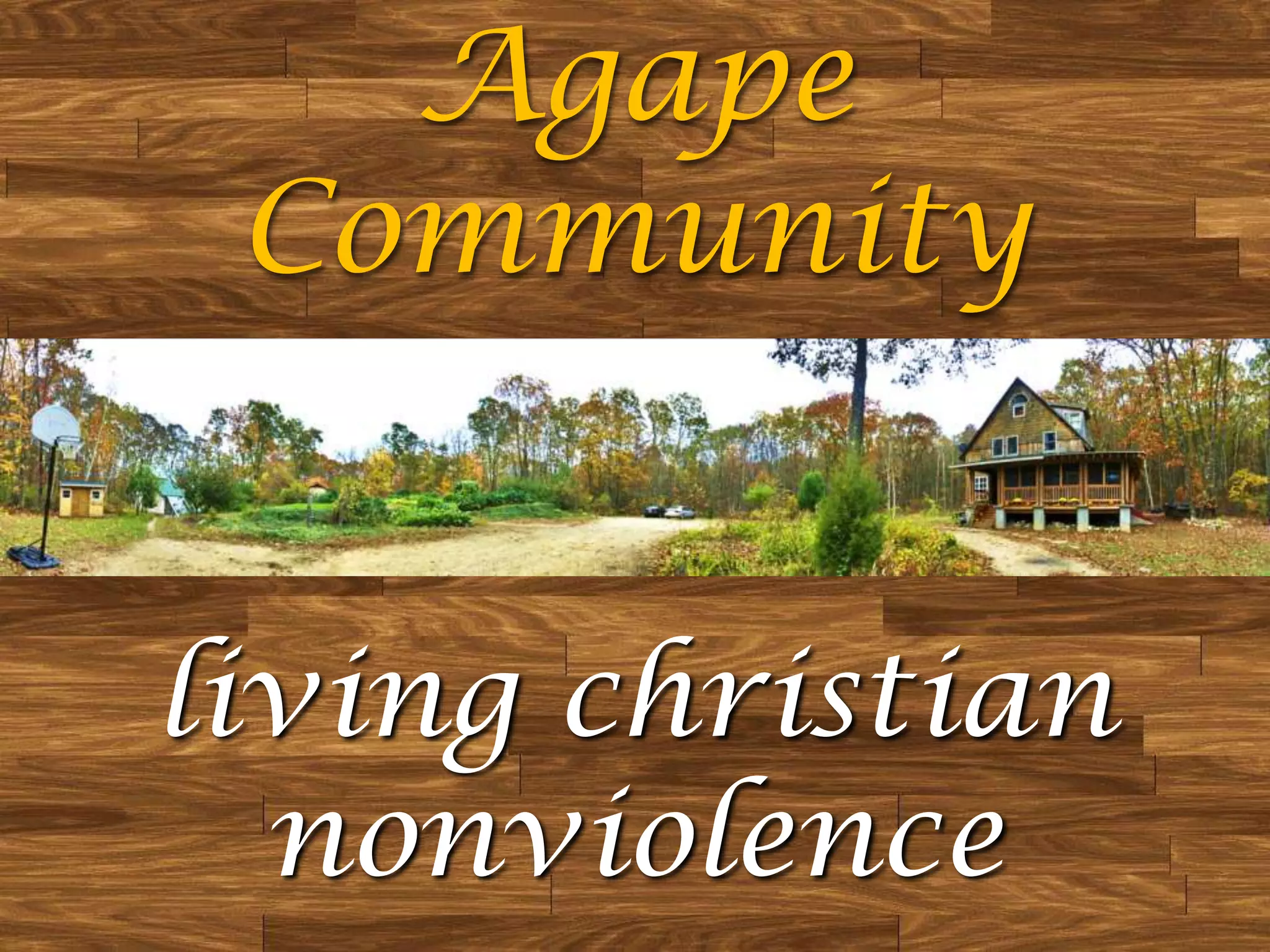 The Agape Community, co-founded in 1982, is a lay Catholic intentional community focused on prayer, sustainable living, and nonviolent witness inspired by Jesus and St. Francis. It promotes a lifestyle of nonviolence and sustainability through structures like solar-powered homes, a compost toilet system, and an organic garden. The community hosts interns and volunteers participating in various activities, while fostering a contemplative life through prayer, reflection, and communal celebrations.