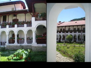 Mănăstirea Agapia was built between 1642-1644 by Hatmanul Gavril Coci in Vasile Lupu's time. The church interior was painted by Nicolae Grigorescu between 1858-1861 before he studied in Paris. The monastery houses a miracle-working icon of the Virgin Mary given to Alexandru cel Bun by the Byzantine Emperor Manuel Paleolog. It also has a medieval art and religious museum and a library with over 12,000 volumes.