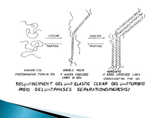 Agar is a polysaccharide extracted from red seaweeds that is used widely in food applications due to its gelling properties. It forms thermo-reversible gels when dissolved in boiling water and cooled. The document details the production process of extracting and purifying agar from seaweeds. It also describes agar's properties including its solubility, viscosity, stability at different pH levels and temperatures. Finally, the summary discusses agar's many uses in foods such as confectionaries, bakery products, meat and dairy applications due to advantages like its wide pH range and ability to gel without adding other ingredients.