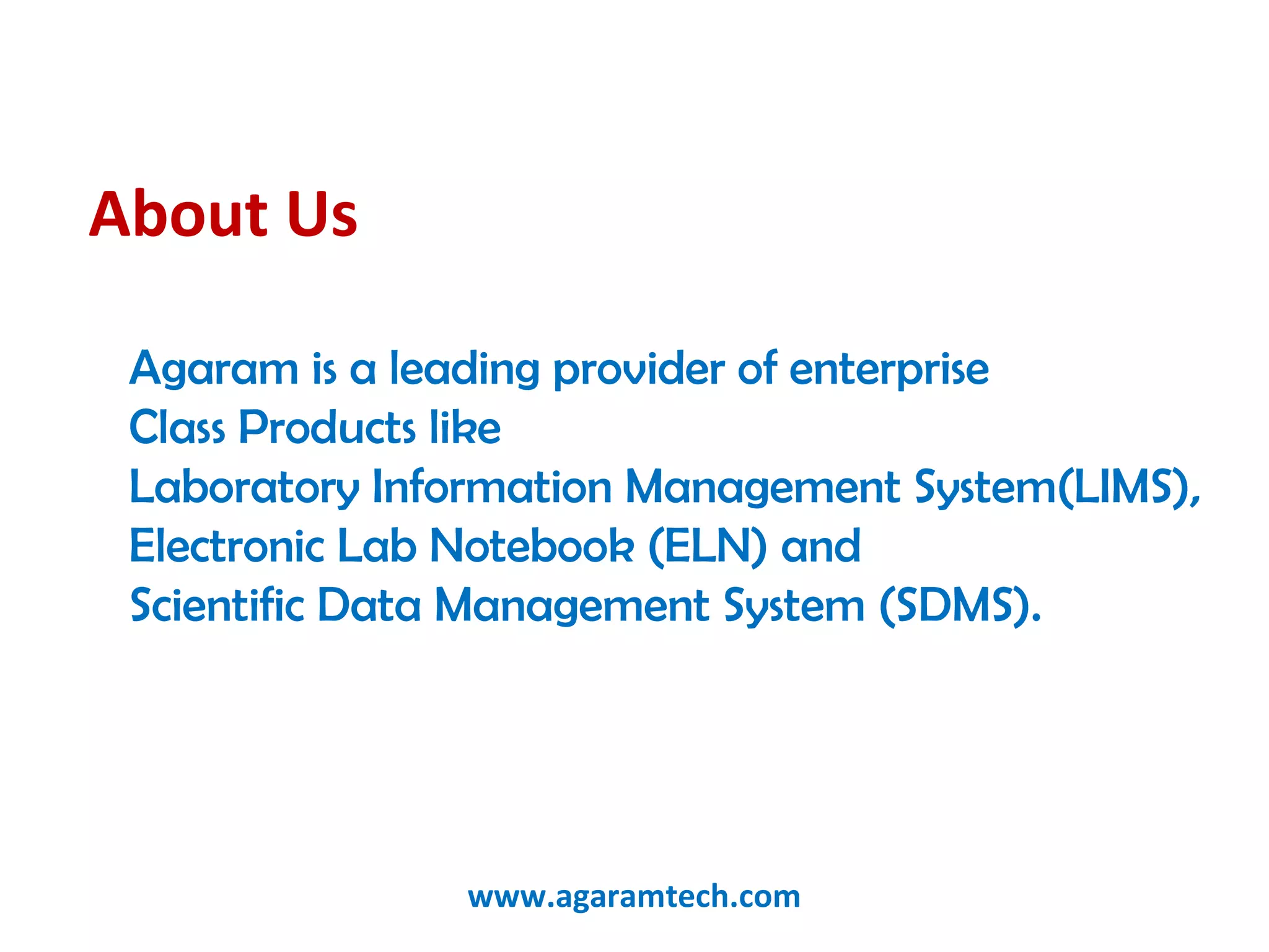Agaram Technologies is a leading provider of enterprise-level solutions, including laboratory information management systems (LIMS), electronic lab notebooks (ELN), and scientific data management systems (SDMS). Their Qualis platform offers versatile, web-based products that support various server and client environments, catering to industries such as pharmaceuticals, chemicals, and food. Agaram also specializes in instrument interfacing solutions to enhance laboratory efficiency.