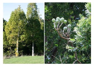 Agathis, a member of the Araucariaceae family, is a tall evergreen tree characterized by a columnar trunk and spirally arranged leaves that can last 15 to 20 years. Its reproductive structures include dioecious male cones that are cylindrical and female cones that are large and sub-globose, consisting of spirally arranged megasporophylls with fused ovuliferous scales. The embryogenic process results in a thick seed coat with 2 to 4 cotyledons and the seeds undergo epigeal germination.