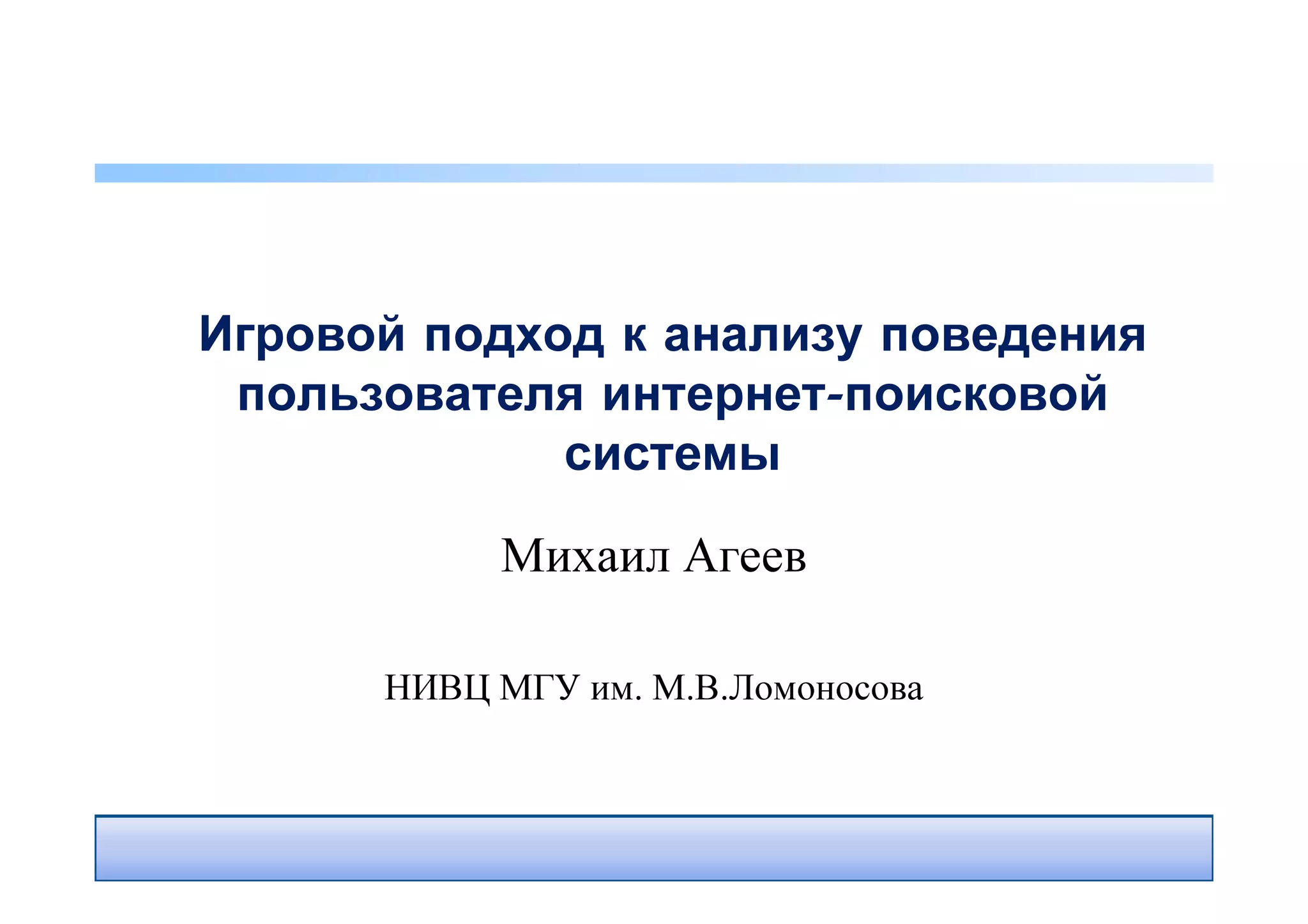 Документ представляет анализ поведения пользователей интернет-поисковых систем с использованием игровых подходов для сбора данных. Основное внимание уделяется моделированию успешных поисковых сессий, оценке качества поисковых систем и предсказанию успешности поиска через методы машинного обучения. Выявлены ключевые характеристики успешных пользователей, а также разработана иерархическая модель успешной поисковой сессии.