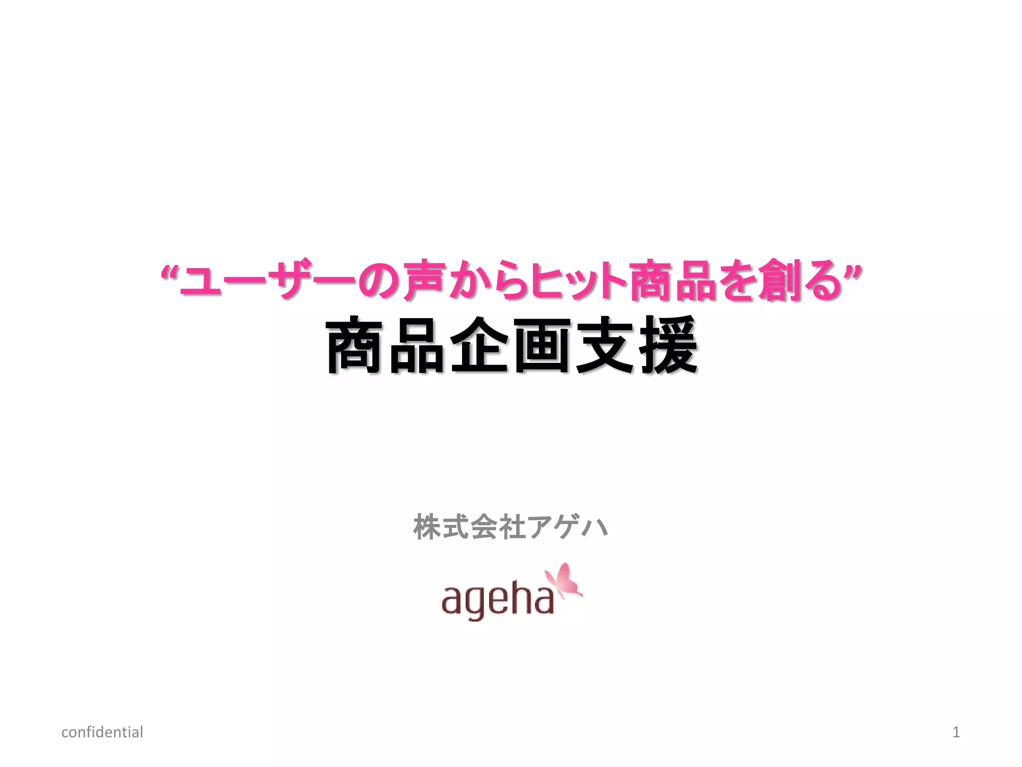 ”ユーザーの声からヒット商品を創る!” 商品企画支援 事業概要 | ファッション感度・情報感度の高いF1層(20-34歳女性)を中心とした、アゲハの「ソーシャル・ガールズ」ネットワークを対象に、深く掘り下げるヒアリング・観察等を行い、新しいコンセプトの商品を企画・ご提案致します。