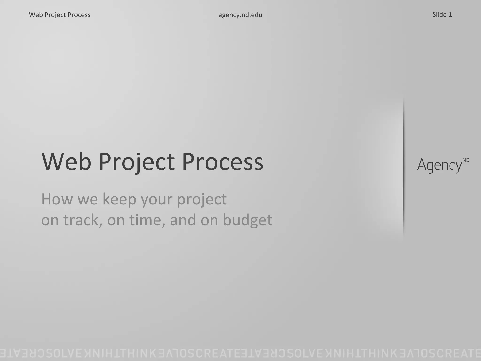 The document outlines the process for keeping a web project on track, on time, and on budget. It discusses reviewing existing content, planning new content, writing and editing content, testing the website, and launching the new website. Key steps include conducting a site audit, developing an information architecture and wireframes, creating design mockups, developing the pages, migrating content, testing throughout the process, and project management tools to monitor timeline and budget.