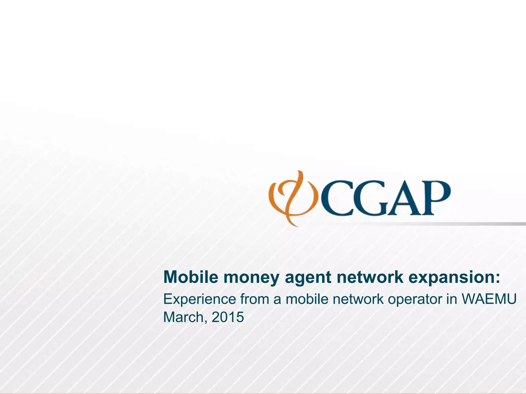 The document outlines a project aimed at expanding a mobile money agent network by adding 1,500 new agents to improve financial access and reduce cash usage. Key outcomes included increased transaction volumes exceeding 100 billion CFA francs, high satisfaction rates among agents, and the identification of significant logistical and supervisory requirements for effective deployment. Lessons learned emphasized the importance of strong partnerships, appropriate training, and efficient monitoring systems to ensure the success of the initiative.